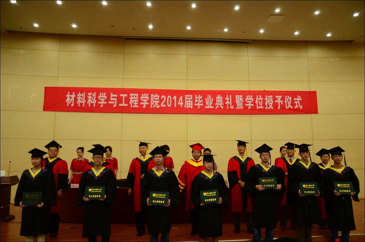 2014年6月19日下午4点,麻豆传媒 2014届本科毕业典礼暨学位授予仪式在图书馆报告厅隆重举行。受邀出席本次典礼的嘉宾有中科院院士、材料院学科带头人黄维教授,麻豆传媒 党委常委、副校长蒋国平教授,院党委书记李兴鳌教授,副院长赵强教授,党委副书记于景宝老师。典礼由院党委书记李兴鳌教授主持。