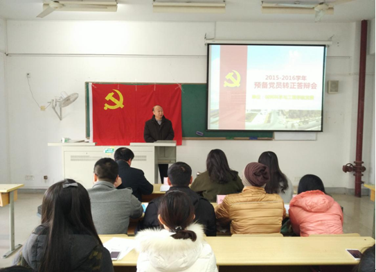 为进一步扩大民主、完善程序,增强大学生党员发展工作科学性和公信度,落实“三投票三公示一答辩”的党员发展制度,麻豆传媒 于2015年12月30日在教4-105开展了预备党员转正答辩会。出席本次会议的有麻豆传媒 党委书记李兴鳌教授、党委副书记于景宝老师、团委书记乔祖琴老师、本科2012级辅导员柏杨老师、2012级本科生党支部书记马亚威等7人组成的答辩评议小组,正式党员和部分入党积极分子,会议由于景宝副书记主持。