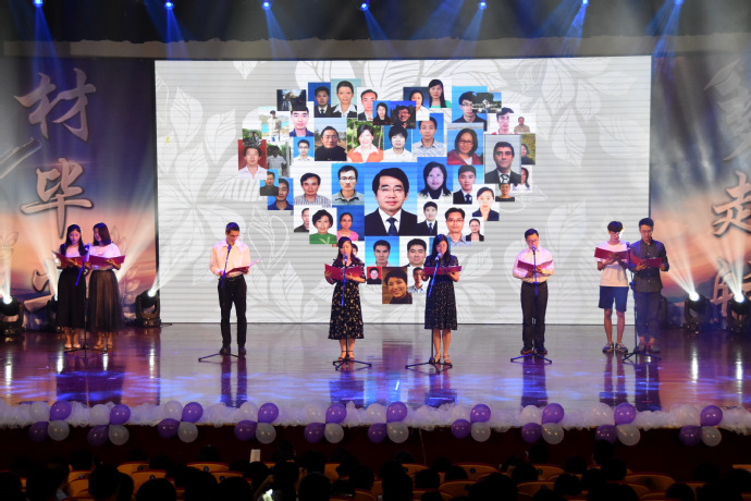 晚会在激情澎湃的合唱《舞动青春》中拉开序幕,似火的青春点燃了在场各位的热情。接着是汪联辉副校长的致辞,汪校长回顾往昔,IAM主支撑的化学和材料学双双进入全球ESI排名的前千分之6,进步之大,令所有IAM人骄傲不已。汪校长勉励在场各位毕业生:将来走入社会要胸怀大志,学会坚持,学会感恩,不忘IAM的拼搏精神。