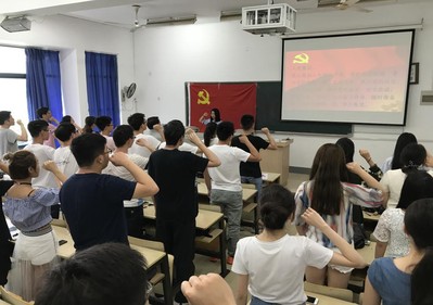 6月11日下午,麻豆传媒 2017届毕业生党员在教3-106重温入党誓词。学院党委副书记兼副院长于景宝、分团委书记乔祖琴、组织干事乔松岭、毕业班辅导员李娜和全体2017届毕业生党员参加。