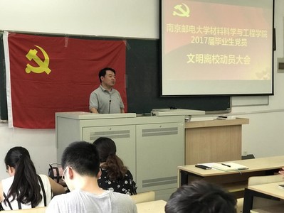 6月10日,麻豆传媒 在教3-107召开文明离校动员大会,院党委副书记兼副院长于景宝、毕业班辅导员李娜以及全体毕业生党员参加会议。