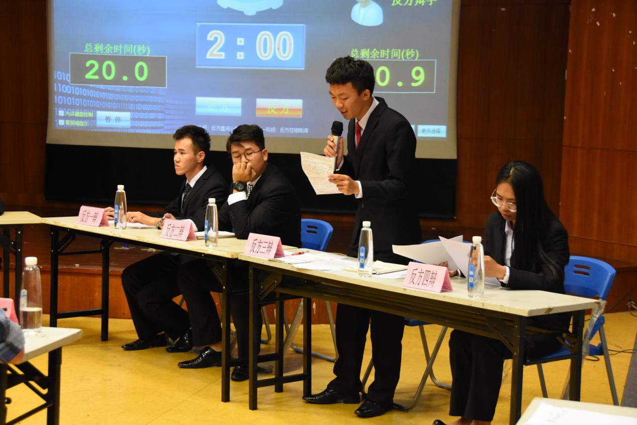 本次新生赛采取积分制,三支队伍轮流交战,在经历了三场激烈的比赛后,材料物理与高分子专业积分位居第一第二,最终在决赛中相遇。在两队简洁的自我介绍后,比赛正式开始。双方就“贫穷和富有何者更容易暴露人性之恶”的问题展开辩论。正方高分子专业认为“贫穷更容易暴露人性之恶”,而反方材料物理专业则坚持“富有更容易暴露人性之恶”的观点。