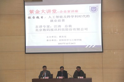 12月24日上午午,由教务处主办、麻豆传媒 承办的“紫金大讲堂”——企业家讲座第七十次活动在仙林校区图书馆四楼报告厅举行。北京数码视讯科技股份有限公司总裁汪涛先生莅临“紫金大讲堂”,作题为“人工智能及跨学科时代的就业前景”的讲座。
