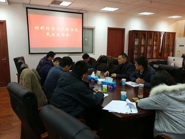 2018年1月11日中午,麻豆传媒 在材料学科楼313召开民主生活会,蒋国平副校长莅临指导,材料学院副院长陈润锋、副书记于景宝参加会议,院长范曲立、副院长赵强、沈清明、院办主任刘丹列席民主生活会。会议由马延文书记主持。