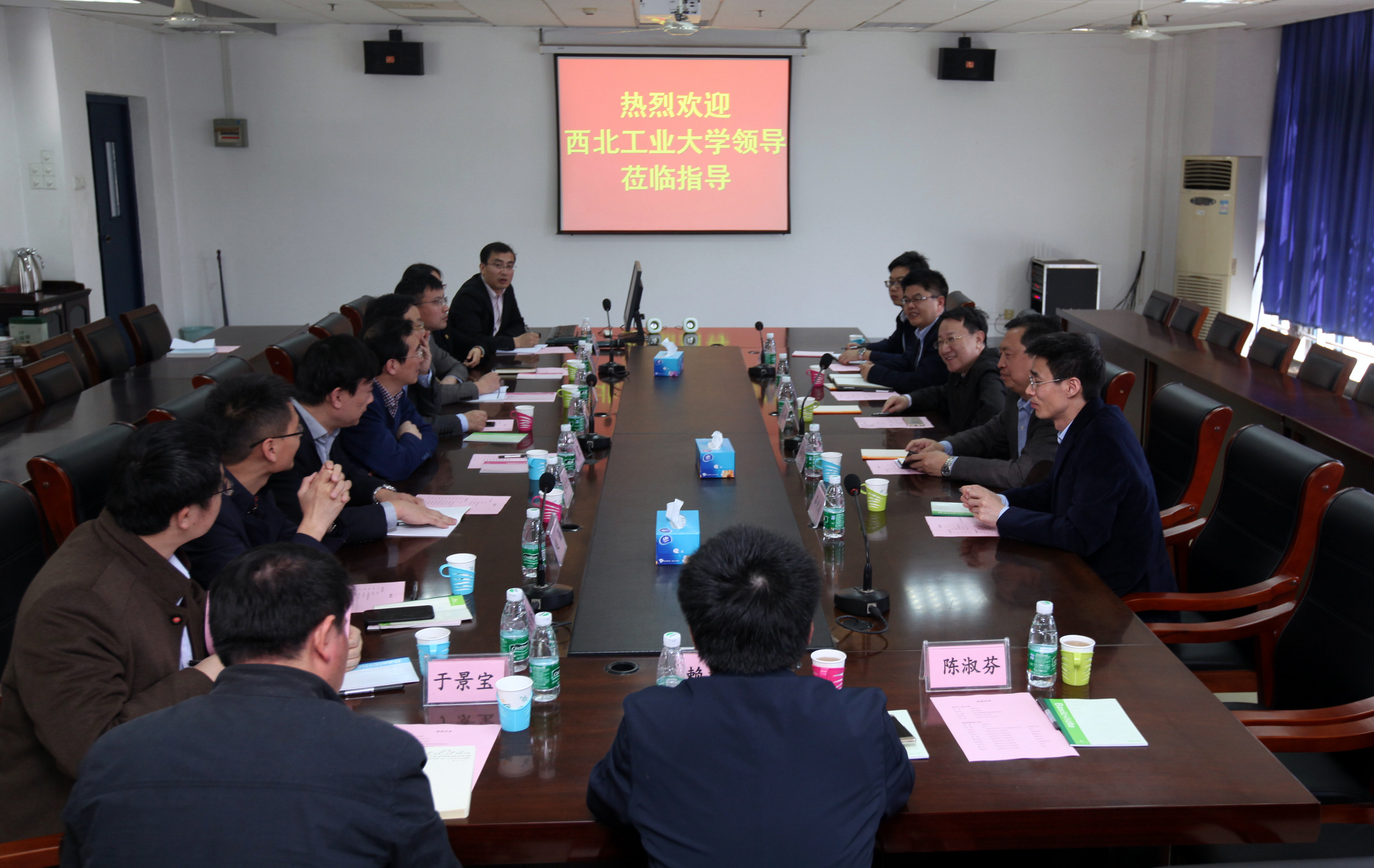 4月9日上午,在刘陈书记、杨震校长的陪同下,西北工业大学党委书记张炜,校长助理侯成义、校长助理兼党委组织部部长杨晓一行来麻豆传媒 访问。麻豆传媒 范曲立院长、赵允玉书记在材料学科楼413会议室会见了来宾,双方就人才工作、学科建设、人才培养、科学研究、社会服务、国际化交流合作、发展目标等方面进行了交流,表示要进一步充分发挥各自特色、优势互补、共同加快推进双方合作。