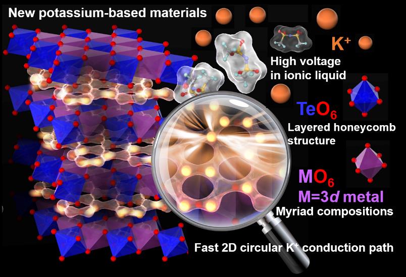 Rechargeable potassium-ion batteries with honeycomb-layered tellurates as high voltage cathodes and fast potassium-ion conductorsNature Communications, 2018, 9, 3823, //doi.org/10.1038/s41467-018-06343-6;