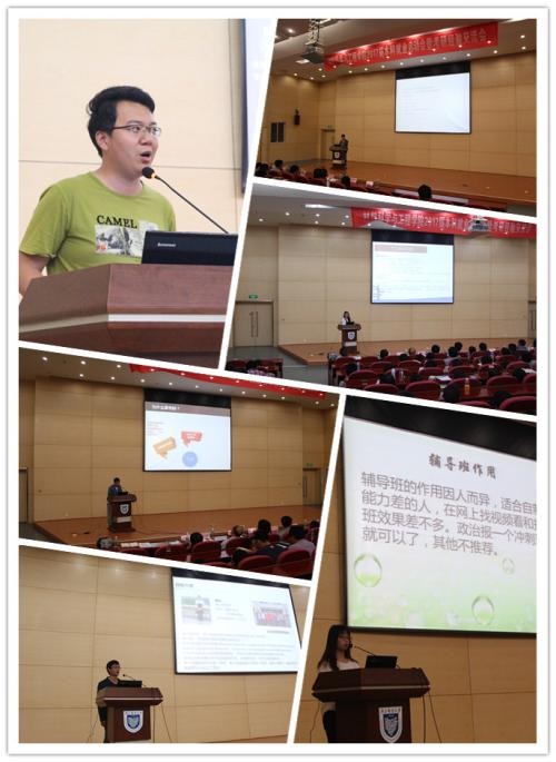 考取985、211高校及本校的学生代表蒋卓伦、薛孟、王翌州同学就考研复习备考、复试面试方面需要注意的问题分享了各自的经验;郭瑞妍、马逾辉同学就保研的流程、准备事项以及出国留学的申请过程与在场同学进行了交流;博士生陶冶同学就学院的教学科研资源给同学们进行了介绍,分享了在学院的求学与科研历程。任过主要学生干部、有创业经历、考取学院硕士、通过直博的焦云飞同学讲述了自己学习工作思想的转变过程,人要有不懈的追求,才能有丰富多彩征程和收获。互动环节过程中,优秀学生代表为台下的同学耐心的解答了关于考研、创业、就业的疑问等。