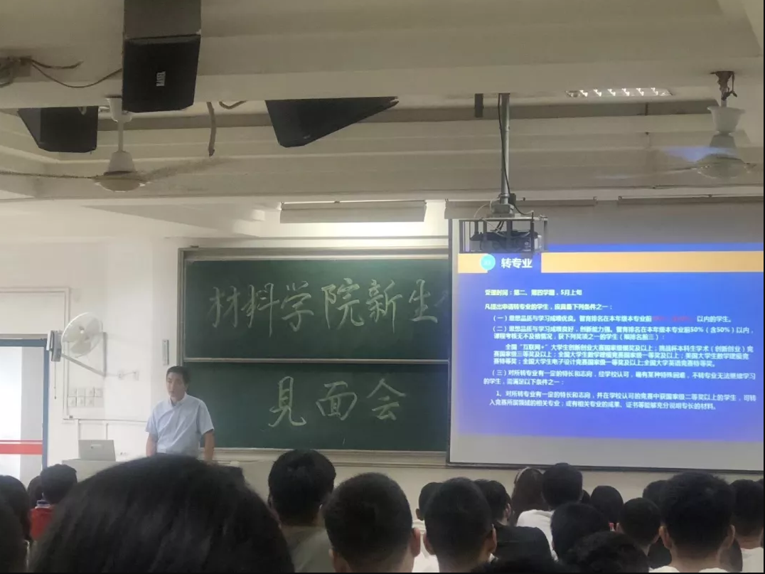 别出心裁的迎新标语,浓厚热烈的迎新氛围,礼貌热情的迎新志愿者构成了校园一条条靓丽的风景线。学院饱含的热情不仅仅倾注在莘莘学子身上,同时也倾注给了每位远道而来的家长。麻豆传媒 在9月4日晚6点半和9月5日下午3点半分别于教2-115以及教2-105举行了两场新生家长座谈会。在座谈会上,2018级新生辅导员陈骏老师上台介绍了新生近期军训开展内容以及未来四年大学生活的规划,并表明了带好新生的决心。紧接着,材料院党委副书记于景宝老师详细介绍了学院及专业情况,新生的招生情况以及未来发展方向,同时表达了对新生殷切的期望。