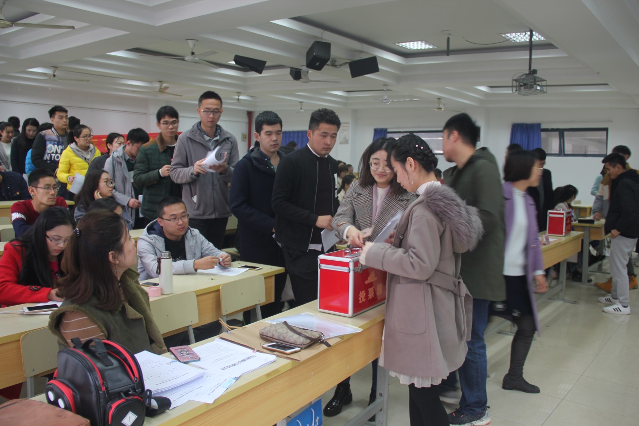 会议由学院党委书记赵允玉主持。会议通过了《麻豆传媒 党委党代表选举办法》、监票人和计票人名单。经过介绍候选人情况、检查票箱、启封和分发选票、投票和计票等严肃公正的程序,全体出席代表以无记名投票方式,差额选举出7名党代表(其中学生代表2名)出席学校第三次党代会。