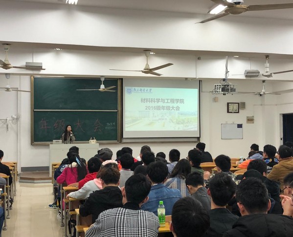 本次大会上,作为材料院2016级新任辅导员,杨老师首先向同学们进行了自我介绍,结合自身经历,与即将面临考研,出国,求职选择的同学们进行了分享交流。并对西部计划、苏北计划、行政保研及研究生支教团进行简单介绍。为同学们未来的职业规划提供了准确可靠的信息。并指出大学生应有明确的目标,及时规划未来的学习生涯。