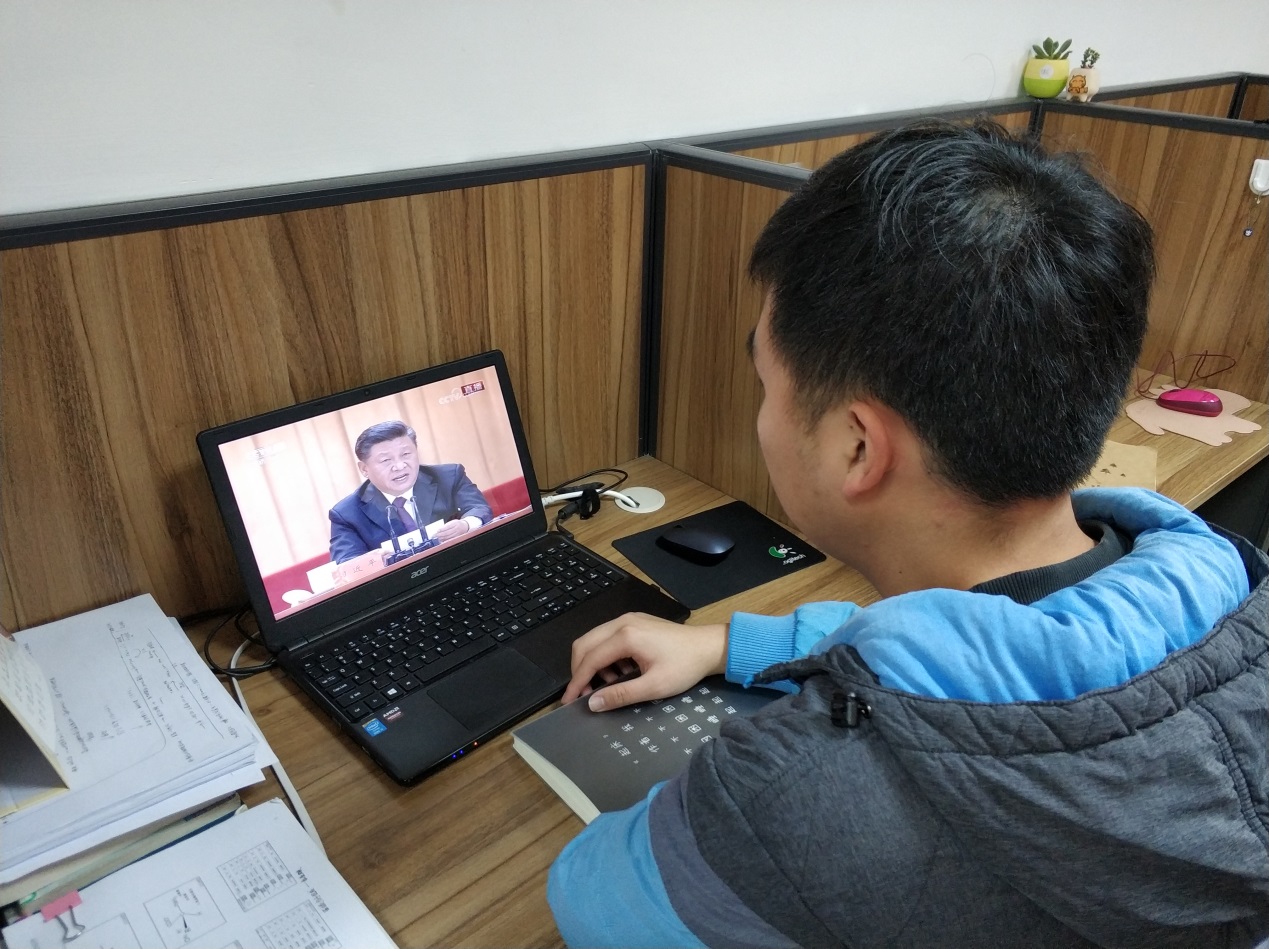 观看师生代表们表示要牢记习近平总书记重要讲话精神,更加紧密地团结在党中央周围,高举中国特色社会主义伟大旗帜,不忘初心、牢记使命,将改革开放进行到底,在自己的工作岗位上做出更大贡献。