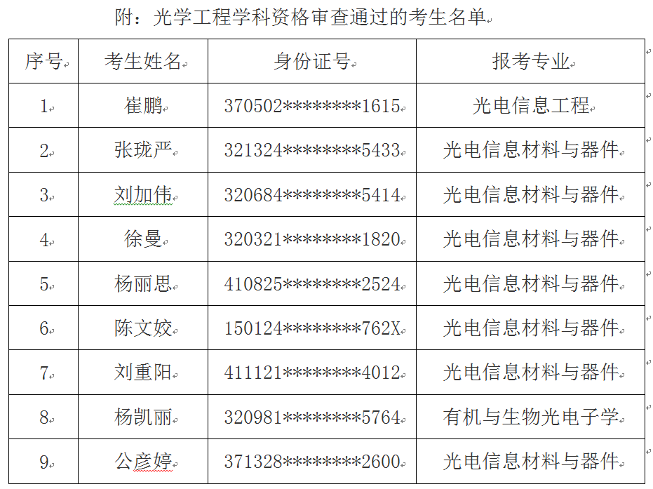 根据《麻豆传媒 博士研究生招生“申请-考核”制招生办法(试行)》的要求,以及《麻豆传媒 光学工程学科2019年博士研究生招生“申请-考核”制实施细则》的相关规定,光学工程学科申请考核博士生选拔领导小组根据考生所提交的申请材料,对其报考资格、基本素质和科研潜质进行了评估与初选,现对通过资格审查的考生名单予以公示(公示名单见附件),公示时间:2018年12月19日—2018年12月26日。