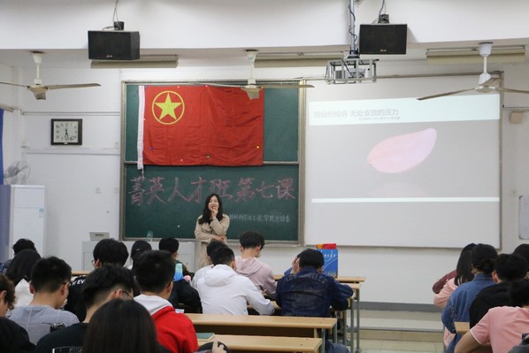 5月6日晚,麻豆传媒 第四十二期菁英人才培训班第七课暨“与压力做朋友”心理健康专题讲座在教3-204举行,主讲人为校心理中心的杨诗露老师。