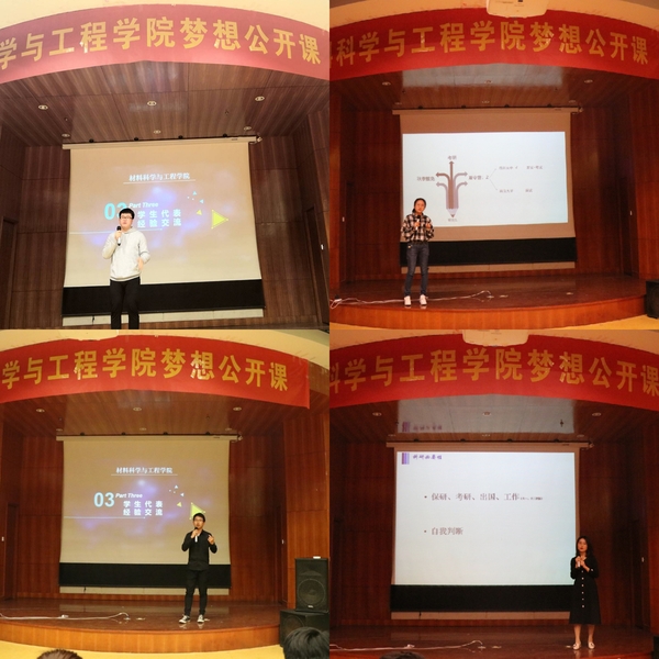 焦云飞学长向大家讲授了自己在创新创业道路上,从无到有、从弱到强,虽经历波折坎坷,但锲而不舍,最终成功创业的事迹。刘中法学长以时间为线,讲述了自己是如何从曾经的胆怯懦弱一步步蜕变成如今的自信成熟,他用自身的经历告诉大家选择的重要性。王思静学姐分享了自己是如何在考研和保研中抉择,并最终获得保研的成功经历,“机会是留给有准备的人,努力不一定会有收获,但是不努力一定没有收获”,学姐的话激励着在场的每个人。马素萍学姐主要讲述了自己是如何进行科研工作的,重点与大家分享了个人读文献的方法,大家受益匪浅。吴涛学长分享了自己整个面试华为的过程以及其中发生的趣事,使得在场无不欢声笑语。