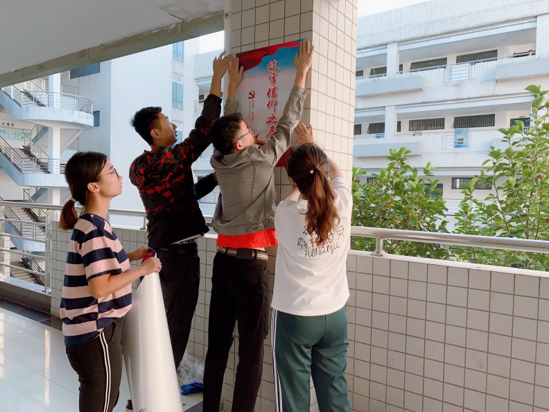 2019年9月20日,办公室党支部组织全体党员开展了志愿服务活动,大力营造“不忘初心、牢记使命”主题教育氛围,完成了材料学科楼主题教育氛围的营造工作。