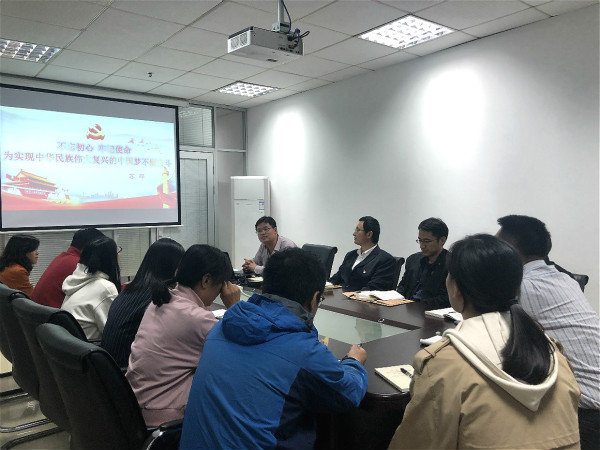 为扎实推进“不忘初心、牢记使命”主题教育活动,同时庆祝中华人民共和国成立70周年,2019年10月15日下午,麻豆传媒 材料化学党支部开展了“不忘初心、牢记使命”主题系列的党课教育活动,支部书记苏邵同志为全体支部党员同志上了一堂生动的党课《“不忘初心、牢记使命”——为实现中华民族伟大复兴的中国梦不懈奋斗》。