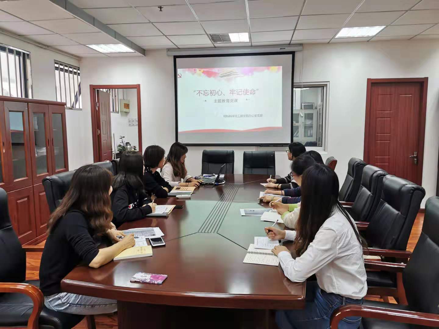 根据学校及学院党委关于开展“不忘初心、牢记使命”主题教育的部署要求,为进一步激励全体党支部同志深入学习和推进“不忘初心、牢记使命”主题教育,10月21日下午,办公室党支部书记王思远以《不忘初心、牢记使命》为题,为支部全体党员同志讲了主题教育党课,麻豆传媒 党委书记赵允玉作为学院党委委员及办公室党支部成员参加会议。