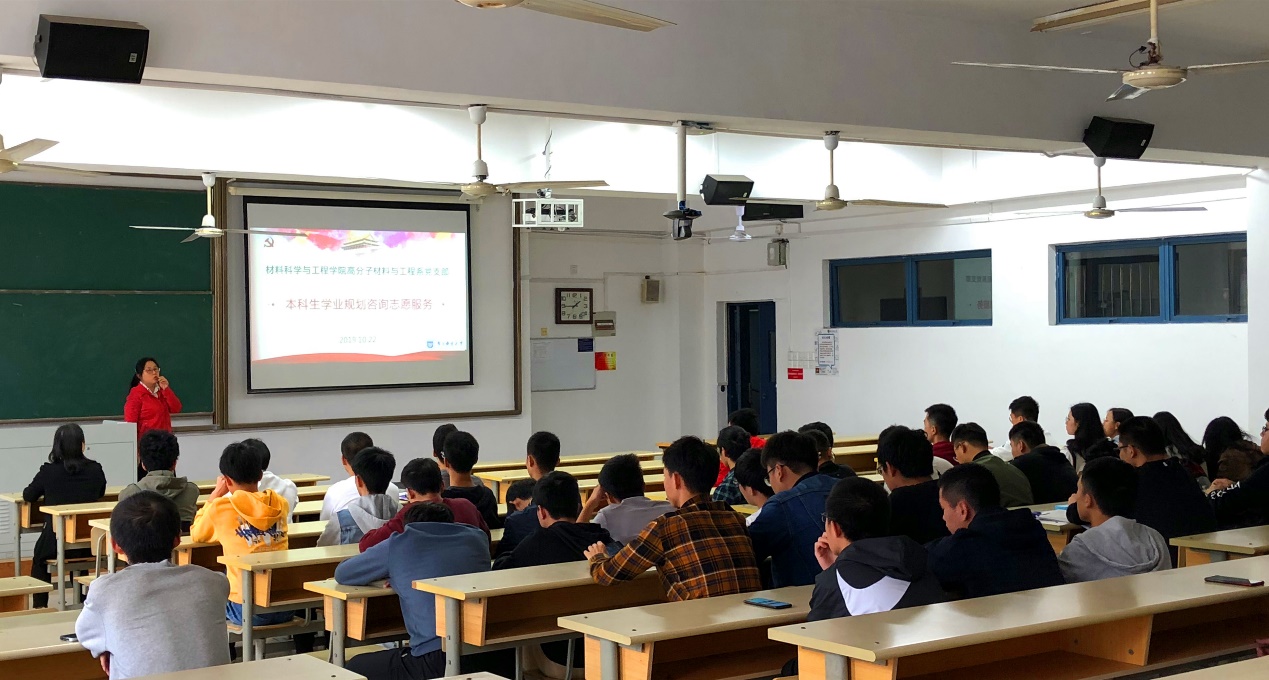 为深入推进“不忘初心、牢记使命”主题教育,激励全体党员同志把主题教育的成果转化为促进各项工作发展的实际成效,高分子材料与工程系教师支部、材料物理支部在10月22日下午开展了学业规划咨询志愿服务,与高分子材料与工程专业本科二年级学生就学业学习、未来发展和人生规划等方面展开交流和指导。