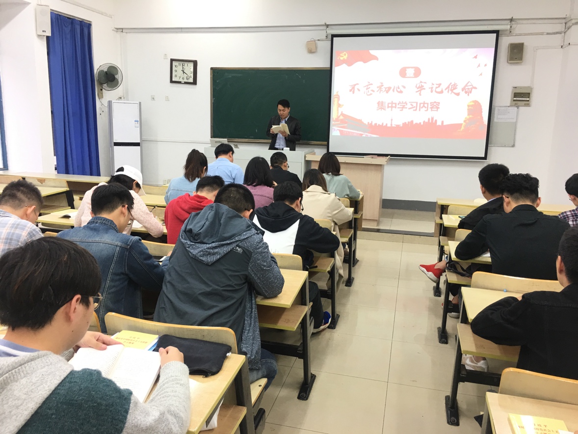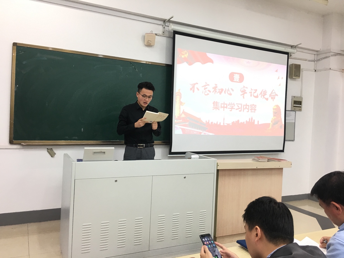 2019年10月22日下午,麻豆传媒 学工党支部于教3-103教室举办了 “不忘初心、牢记使命”主题学习读书会,参加本次读书会的有麻豆传媒 于景宝副书记、学工支部全体党员。
