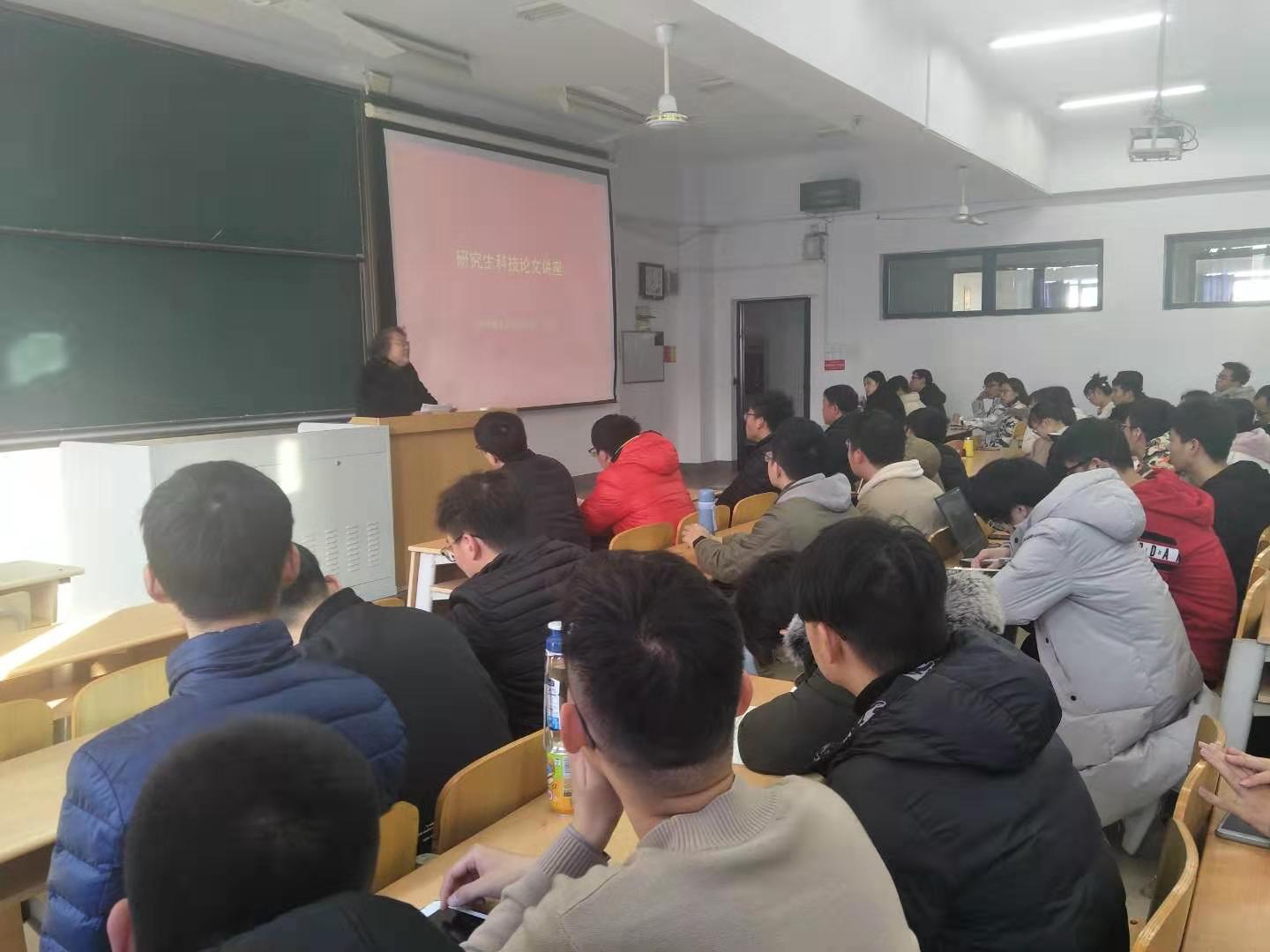 2019年12月6日上午9点30分,麻豆传媒 关工委副主任谌进老师结合学院科研特色,作了题为“科学论文写作技巧”的讲座。学院党委副书记兼副院长于景宝,2019级研究生辅导员赵赫男,2019级全体研究生参加了本次讲座。