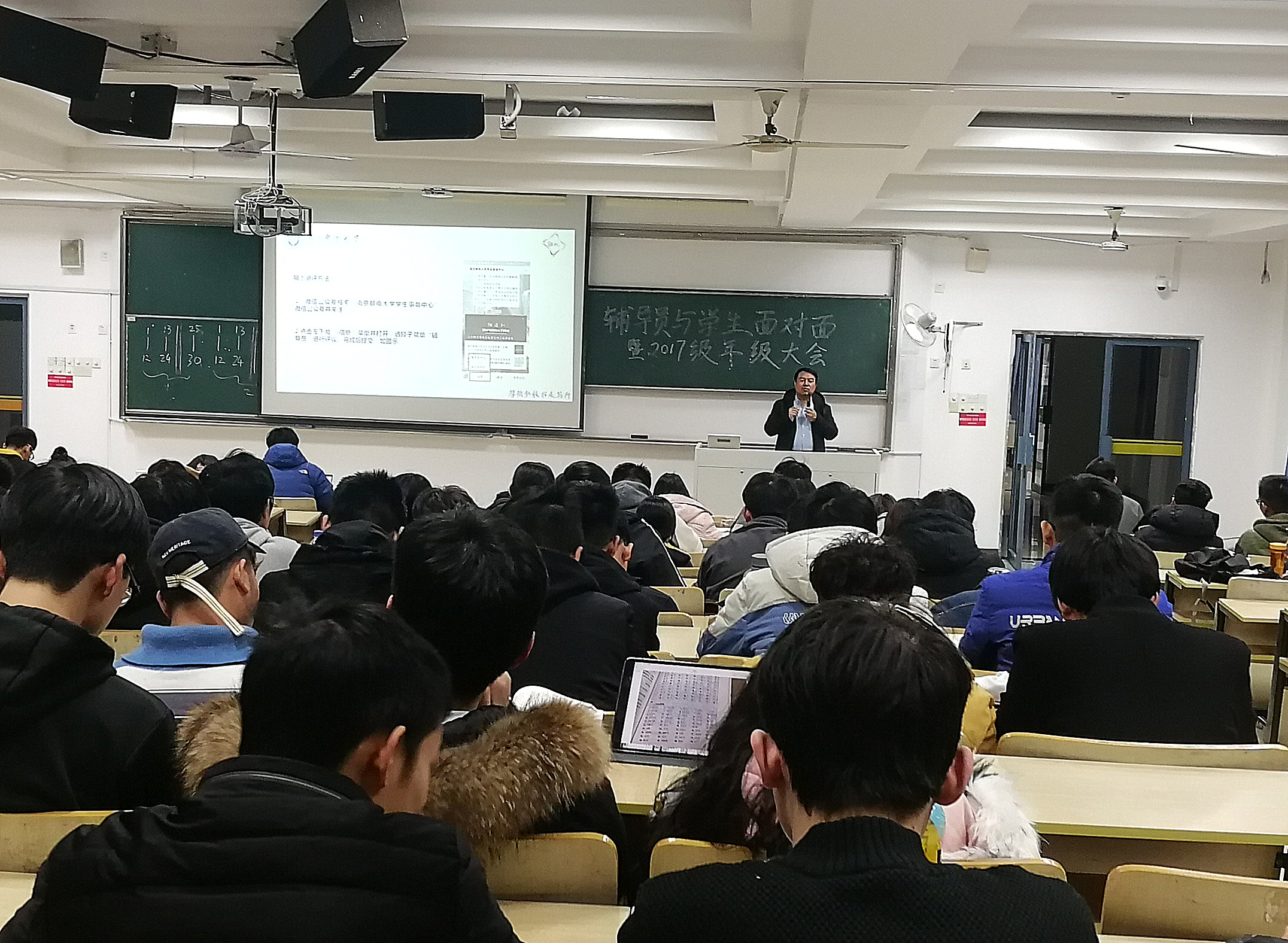 2019年12月12日,麻豆传媒 2017级本科生在教3-301召开辅导员与学生面对面暨2017级年级大会。会议上,2017级辅导员王森老师对2019-2020年度第一学期进行了工作总结以及对下学期工作进行展望布置。从学习、卫生和纪律等角度指出了当前2017级本科生存在的问题。他希望同学相信每一位对同学们负责的老师,并抓紧时间努力学习。最后他要求同学们在2020年要做好人生计划。无论是考研还是工作,时间都越来越紧迫。