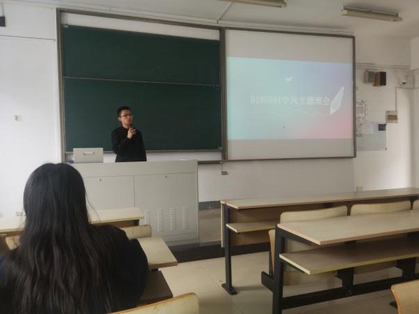 班会开始,首先由班长王子彤同学为大家汇报了开学以来的工作情况和班级情况,呼吁大家积极配合班委工作,完成班级相关事务,并且动员所有人积极学习,完成学业的同时努力考研,为自己的未来规划蓝图。随后B180501班的团支书黄威同学汇报了团支部的工作情况,鼓励大家参与团支部活动,做一个优秀共青团团员,积极向党组织靠拢。最后由麻豆传媒 2018级辅导员陈骏向我们介绍了学院历年的毕业去向,沟通并了解了大家目前的想法与方向,鼓励班上同学尽早规划自己的职业生涯。