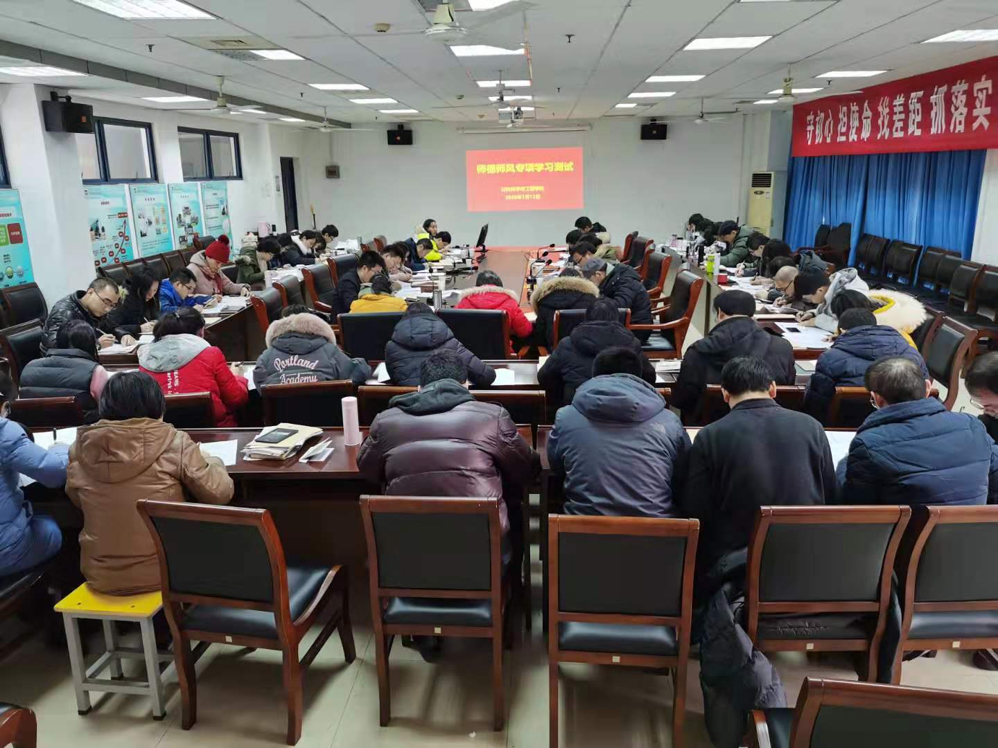 会后,学院组织教师根据《新时代高校教师职业行为十项准则》逐条对照自查,填写《教师年度师德自查情况报告表》,引导所有教职工对师德师风问题知敬畏、存戒惧、守底线,并在会后进行了专项考试,加强学习效果。学院全体教职员工按支部进行了师德师风专项学习考试,考试分设5个考场,考试内容结合教师职业道德规范和《教育部关于高校教师师德失范行为处理的指导意见》《新时代高校教师职业行为准则》《江苏省高校教师师德失范行为处理办法(试行)》《麻豆传媒 教职工处分规定》等文件。