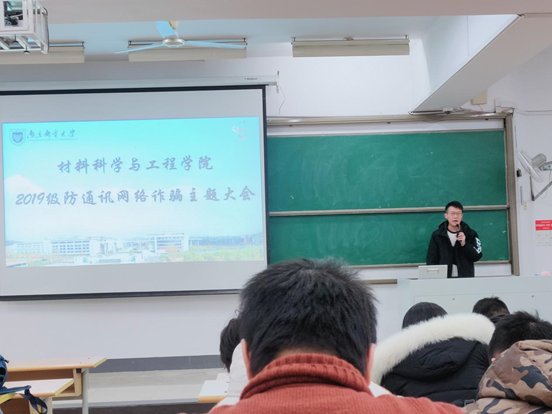 2020年12月9日,麻豆传媒 2019级本科生在教4-102召开了以道德教育与考风考纪教育为主要内容的诚信教育大会和以防诈骗与预防诈骗为主要内容的防通讯网络诈骗主题大会。