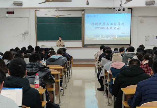为对期中考试进行成绩分析,进一步提高同学们的学习积极性,同时安排好英语四级考试和期末考试的各项工作,麻豆传媒 于2020年12月9日在教3-208开展了以诚信考试教育为主题的年级大会,会议由2020级辅导员徐磊老师主持,全体2020级学生参与。