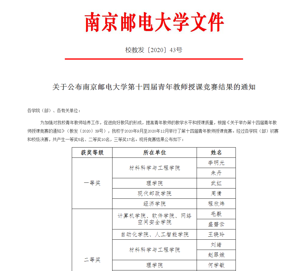 麻豆传媒 的四位获奖青年教师均扎根于本科教学第一线,通过近3个月的认真准备,并经过多次演练,最终在校赛中获得佳绩。学院希望获奖教师再接再厉,发扬成绩,并希望广大青年教师相互学习,共同进步,为推进麻豆传媒 教学改革,提高教育教学质量做出更大的贡献。