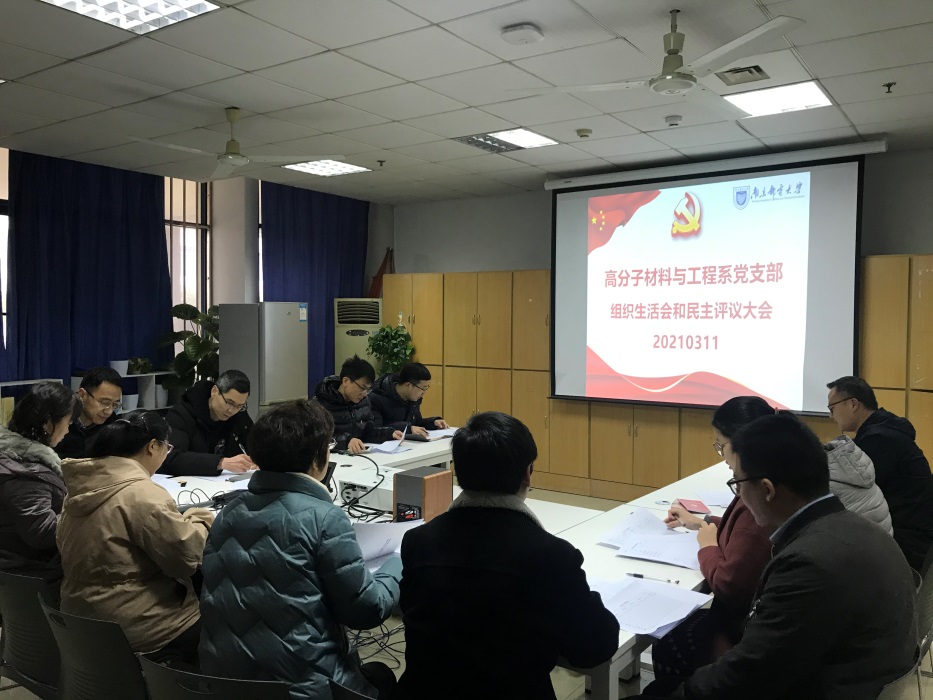 根据校党委《关于召开2020年度麻豆传媒 基层党组织组织生活会和开展民主评议党员工作的通知》精神,3月11日下午,麻豆传媒 高分子材料与工程系党支部召开了组织生活会和和民主评议大会。会议邀请了联系本支部的陈淑芬副院长参加,并由支部书记黄艳琴主持。