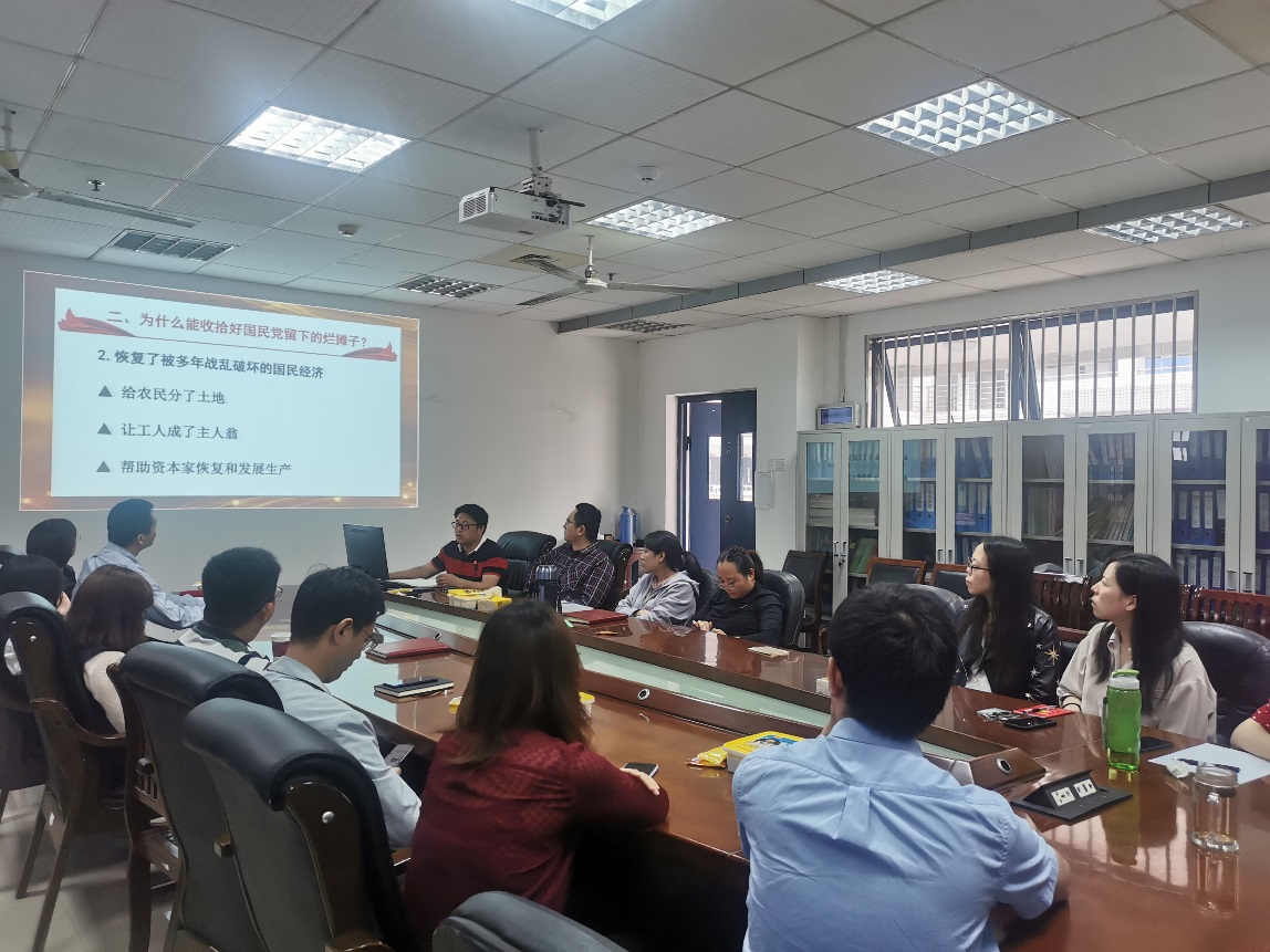 为践行党中央在全党开展党史学习教育的决定,学史明理、学史增信、学史崇德、学史力行,从党的百年伟大奋斗历程中汲取继续前进的智慧和力量,2021年5月19日麻豆传媒 材料化学系党支部开展了“学习百年党史,传承红色精神”主题的党日活动,通过支部书记将党课的形式,学习了中国共产党为什么“能”,深刻领悟到中国共产党在这百年奋斗历程中为什么能建立新中国?为什么能收拾好国民党留下来的烂摊子?为什么翻过严重的错误还能得到人民支持?为什么能取得现代化建设的巨大成就?,随后支部成员赴中共代表团驻南京办事处旧址梅园新村纪念馆实地参观学习,传承我党先贤们为了追求国家和平和夺得革命的伟大胜利展现出来的无私的使命初心、高尚的爱国情操和无畏的红色精神。