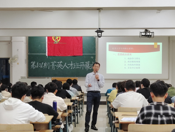 5月20日晚,麻豆传媒 菁英人才学校第一课于仙林校区教4-300举行。本次课程由学院党委副书记张建平主讲,他首先对菁英人才培训班成功举办表示祝贺,随后围绕大学生如何提升素质,做到全面发展为内容开始授课。