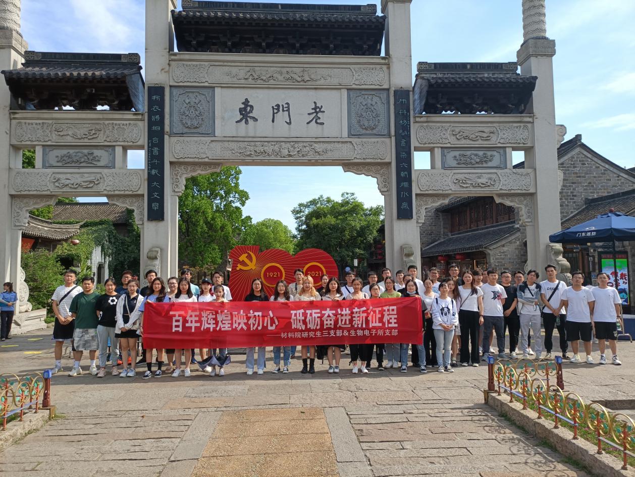 从1921年到2021年,中国共产党走过了整整一百年的历程,百年征程波澜壮阔,百年初心历久弥坚。2021年6月24日,麻豆传媒 研究生三支部及生物电子所支部全体党员赴老门东小东园参观“‘新青年 心向党——建党100周年 点赞辉煌’江苏省新兴青年群体庆祝建党100周年主题展览”,感受新时代新兴青年群体积极向上的精神风貌,庆祝中国共产党成立100周年,向党的百年华诞献礼。