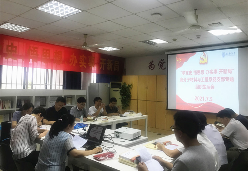 在党的百年华诞之际,麻豆传媒 高分子材料与工程系党支部于2021年7月5日组织全体党员召开“学党史、悟思想、办实事、开新局”专题组织生活会,认真贯彻“学史明理、学史增信、学史崇德、学史力行”要求,开展党性分析,交流学习体会,引导党员进一步深刻领会开展党史学习教育的重大意义,结合自身实际查找差距不足,奋力开新局、奋进新征程。