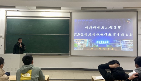 2021年12月9日,麻豆传媒 2021级本科生在教3-300召开了以考风考纪诚信教育主题大会,大会由2021级辅导员王森主持。