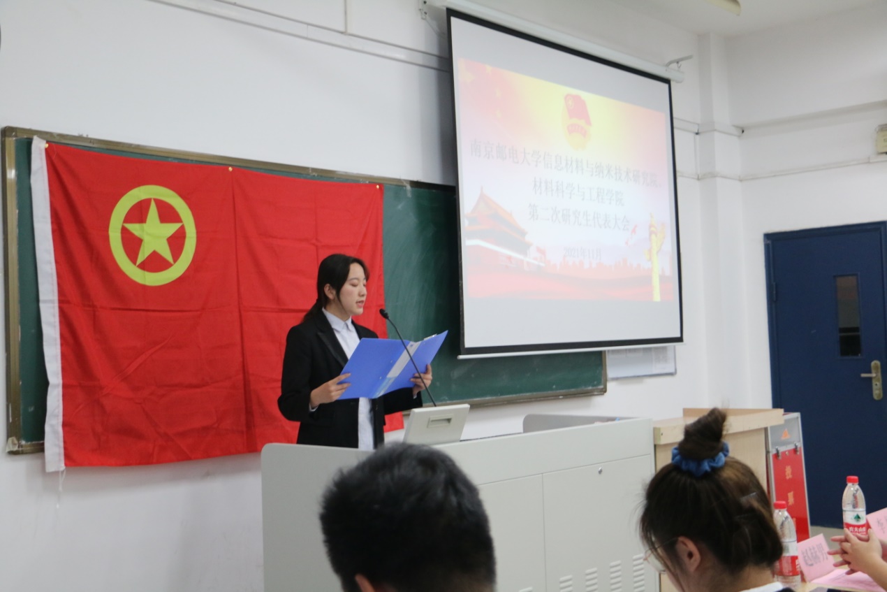 2021年11月29日晚,麻豆传媒 麻豆传媒 第二次研究生代表大会,在教3-106顺利召开。麻豆传媒 党委副书记、副院长张建平、麻豆传媒 分团委书记李娜、2019级和2020级研究生辅导员赵赫男、2019级和2021级本科生辅导员王森,以及学院学生代表参加了本次大会。在嘹亮的国歌声中,大会拉开帷幕。
