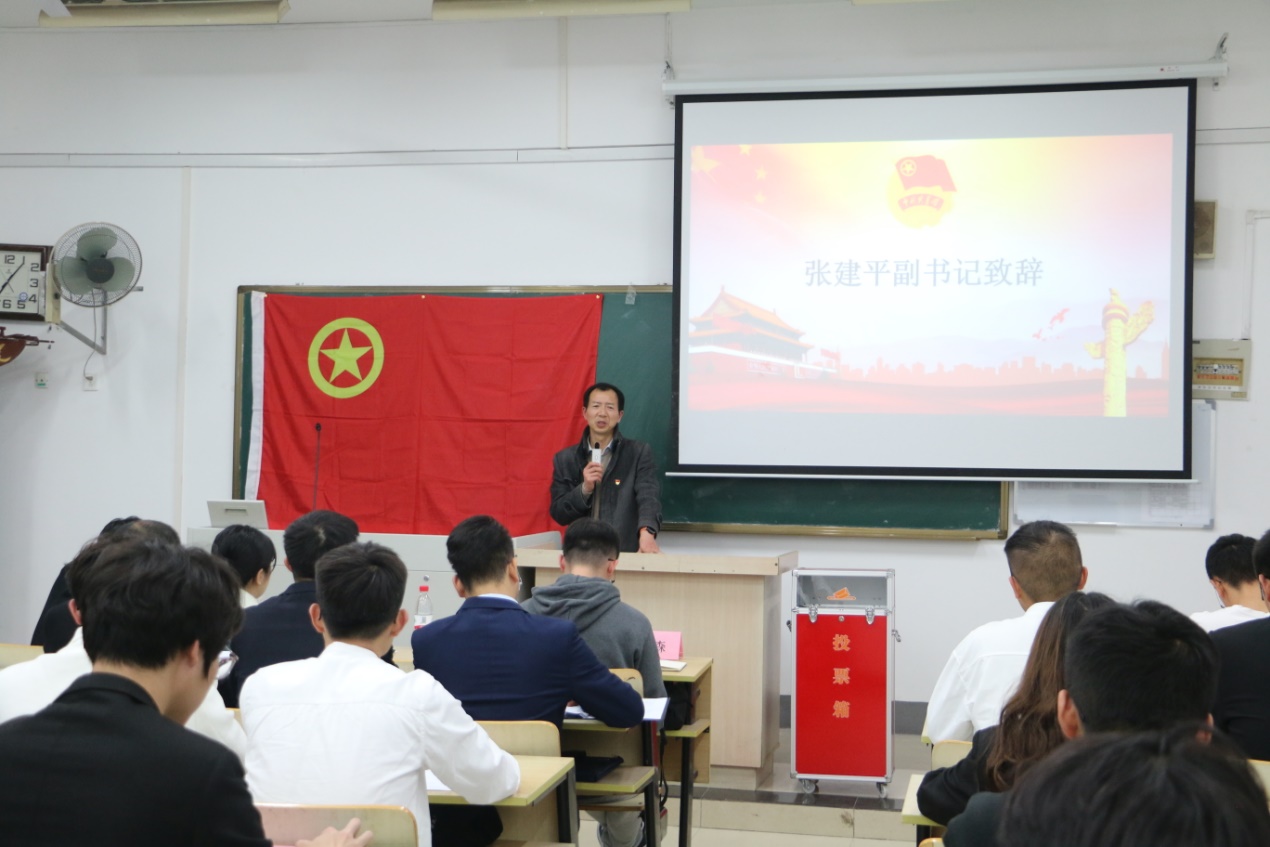 接着是张建平副书记致辞,他阐述了此次大会召开的目的和意义,并强调了此次选举工作的公平性,公正性。