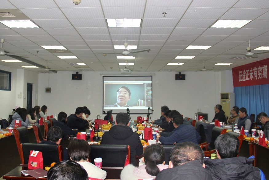会议开始,范曲立院长总结了2021全年学院各项工作,向在场教师通报学院年度发展取得的各项成绩,感谢全体老师勠力同心、共担使命,支持学院在重点平台建设、人才培养等方面取得可喜可贺的成绩。
