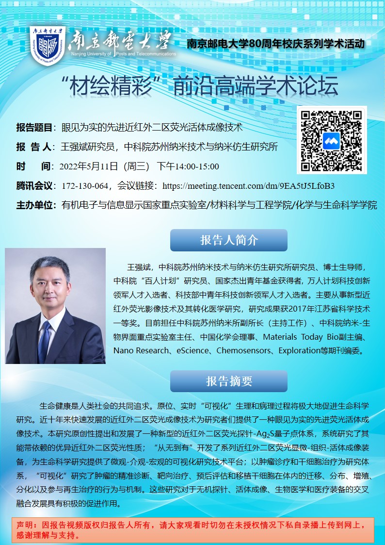 中科院苏州纳米技术与纳米仿生研究所王强斌研究员&清华大学刘冬生教授&新疆大学黄岭教授学术报告