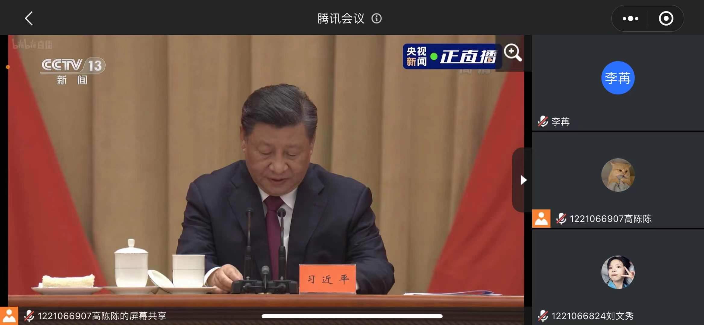 通过直播学习,同学们深刻地感受到了自身肩负的责任和使命。 “青年是整个社会力量中最积极、最有生气的力量”。一个有远见的民族,总是把关注的目光投向青年;一个有远见的政党,总是把组织的基础植根于青年。共青团员们观后表态,当以青春之我,创造青春之中国。