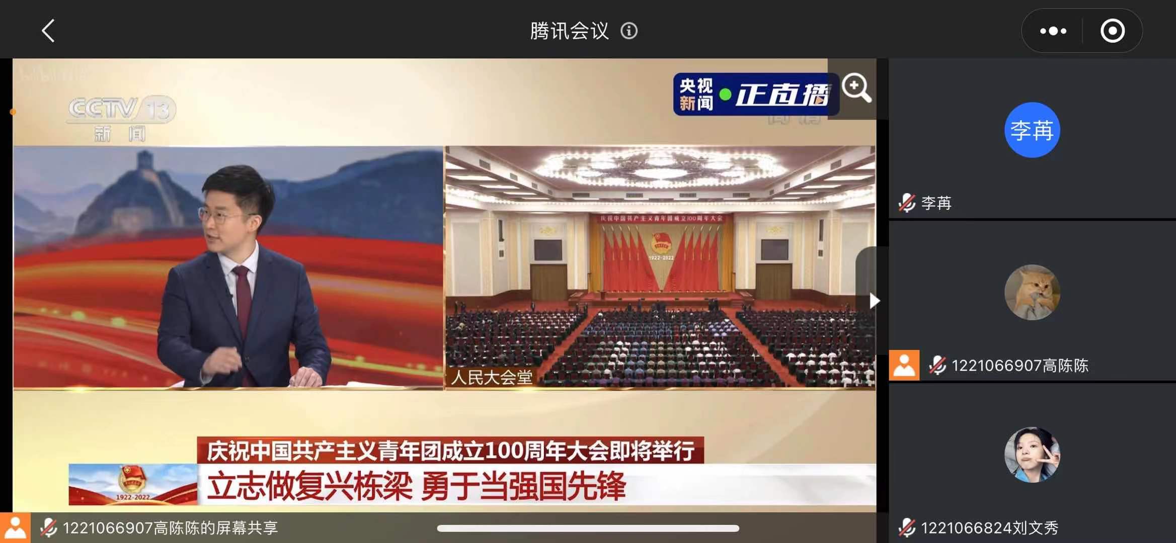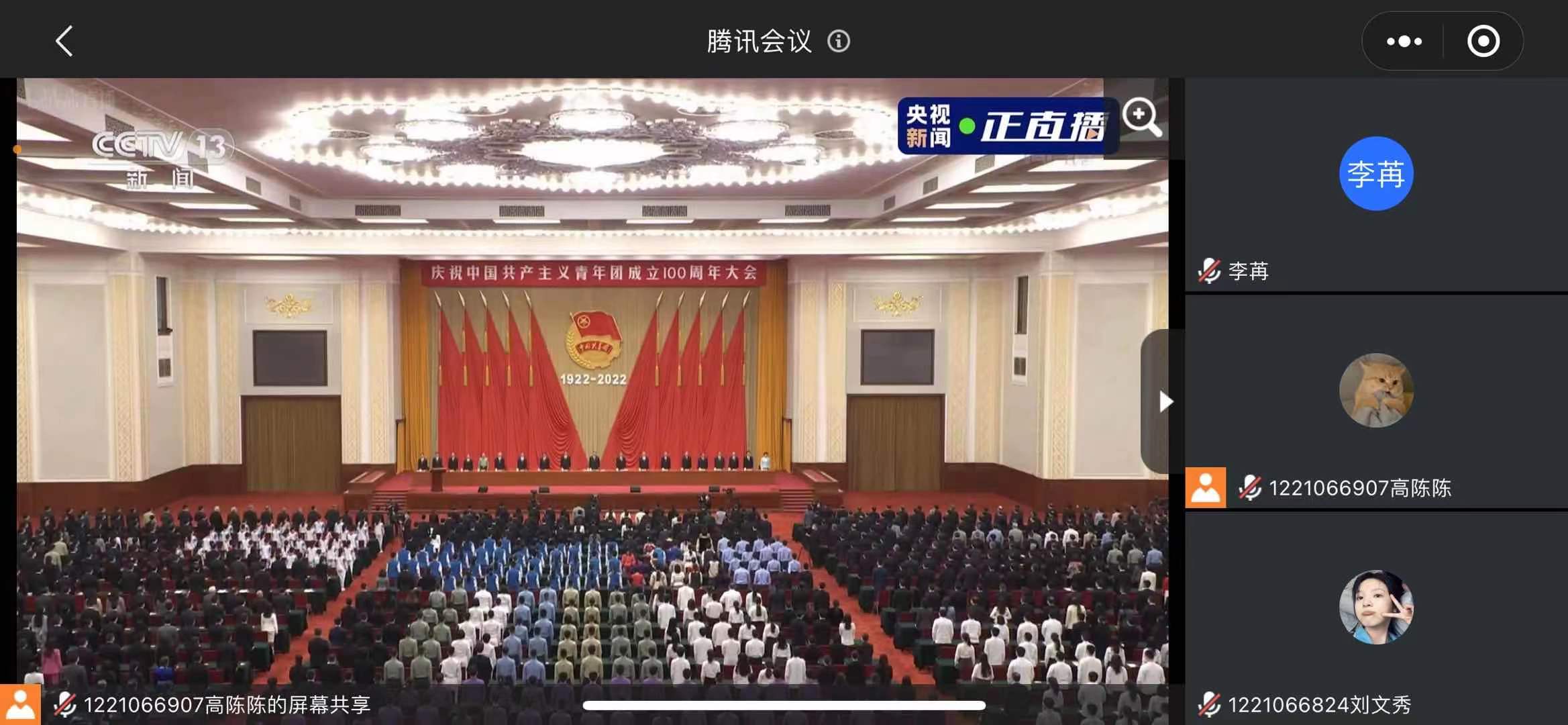观看结束后,大家畅所欲言。时代各有不同,青春一脉相承。研究生代表电子信息专业2021级刘文秀同学表示,“一百年来,中国共青团始终与党同心、跟党奋斗,团结带领广大团员青年把忠诚书写在党和人民事业中,把青春播撒在民族复兴的征程上,把光荣镌刻在历史行进的史册里。”历史和实践充分证明,中国共青团不愧为中国青年运动的先锋队,不愧为党的忠实助手和可靠后备军!