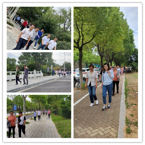 下午1点半,参加健身走的教职工们在教五楼下集合,短暂合影之后,老师们从教五西门出发,前往羊山湖公园。本次健身走活动,教职工参与热情高涨,大家沿途观赏秋日景色,强健体魄,增进交流,系列活动丰富了教师们的文体生活,积极倡导健康运动,为学院更好的发展提供了保障。