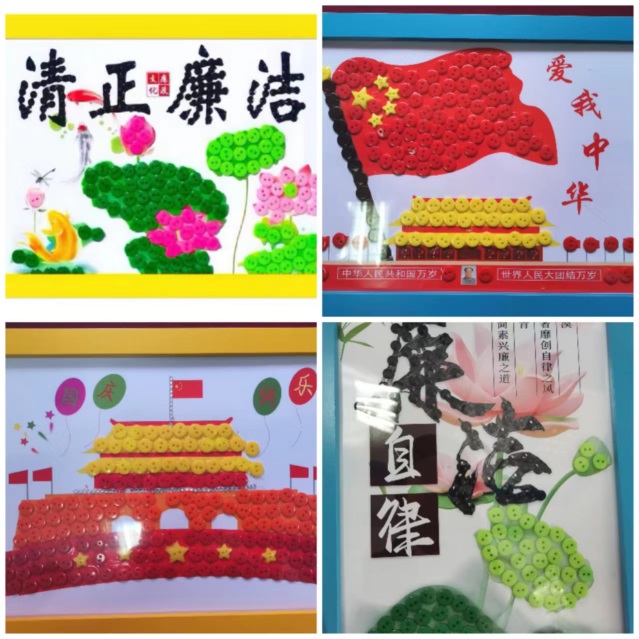 活动设两个环节,研究生二支部的党员同志们在教五大厅设置答题区。栏杆上悬挂带有知识问答的彩纸,师生可在题目竞猜区选择题目,回答正确者可获得纪念品。活动不仅具有趣味性,同时也为师生普及了党建及廉洁文化的知识。在党员活动室,同学们现场参与手工制作,通过材料制作莲花、天安门、国旗等作品,以寓教于乐的形式将廉洁之心和爱国之情根植于心,清廉意识入脑入心,使清廉教育由虚转实、外化于行、知行合一。