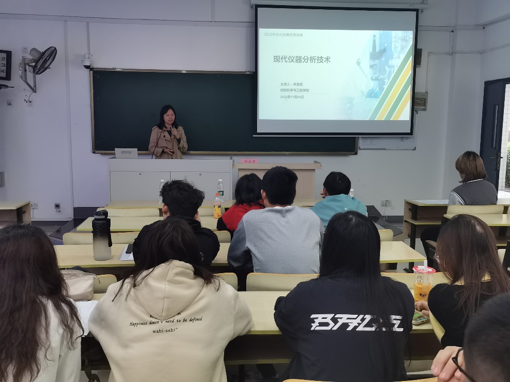 首先,主持人介绍了李美星博士个人简历、教学及科研情况,学院分析测试平台的仪器设备信息及仪器设备对高水平科研成果的重要支撑作用。随后,李美星博士为“菁英计划”学员做了题为《现代仪器分析技术简介》的专题讲座,她从物质/材料的组织形貌、晶体物相、成分价键、分子结构与性能表征等方面分别介绍了常用的X射线衍射仪、X射线光电子能谱(XPS)、透射/扫描电子显微镜、各类光谱仪等现代分析仪器、基本原理及分析技术。