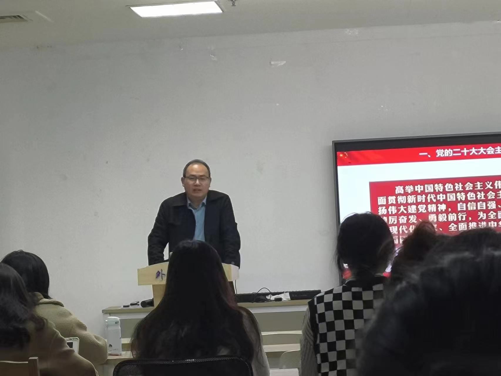 11月15日下午,研究生第一党支部参加思政课导师讲党课系列活动,听取题为“以中国式现代化全面推进中华民族伟大复兴——认真学习贯彻党的二十大精神”的讲座,讲座由外国语学院思政课导师、马克思主义学院副研究员、硕士生导师张宇讲授。