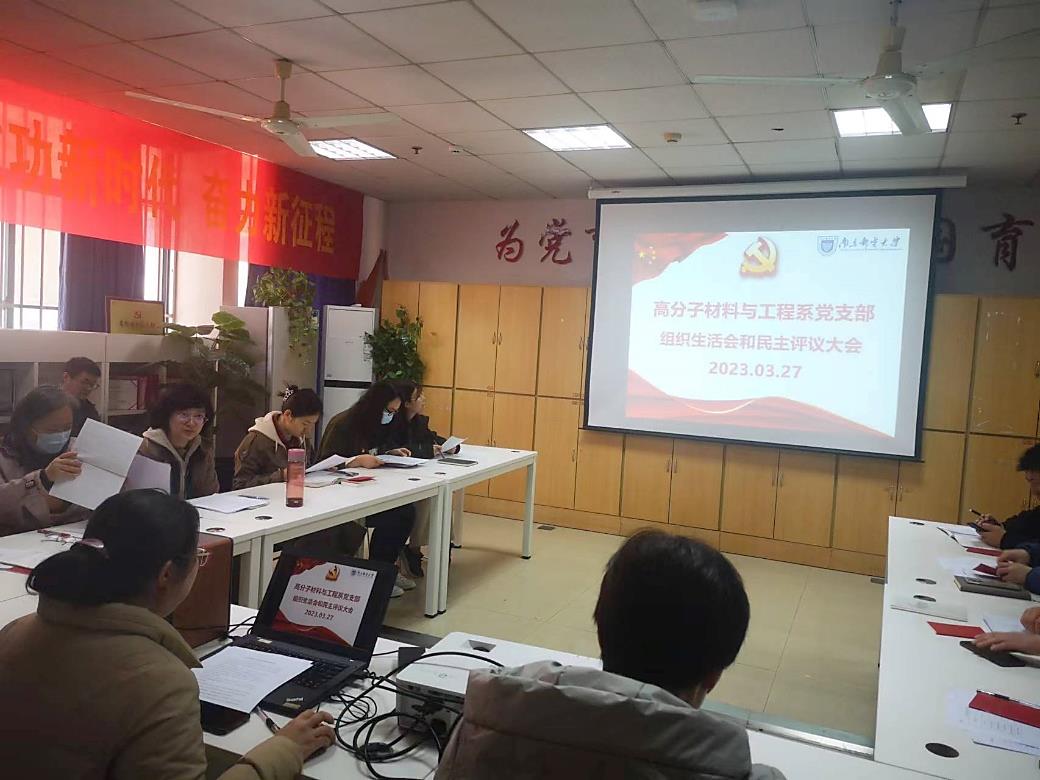 根据校党委《关于召开2022年度麻豆传媒 基层党组织组织生活会和开展民主评议党员的通知》精神,为全面贯彻习近平新时代中国特色社会主义思想,深入学习贯彻党的二十大精神,麻豆传媒 高分子材料与工程系党支部于2023年3月27日组织全体党员召开组织生活会和开展民主评议党员。党员同志们对会前个人自学和党课学习情况进行了研讨交流,并联系实际查摆问题后开展批评与自我批评,坚持自我革命,结合自身实际查找差距不足。