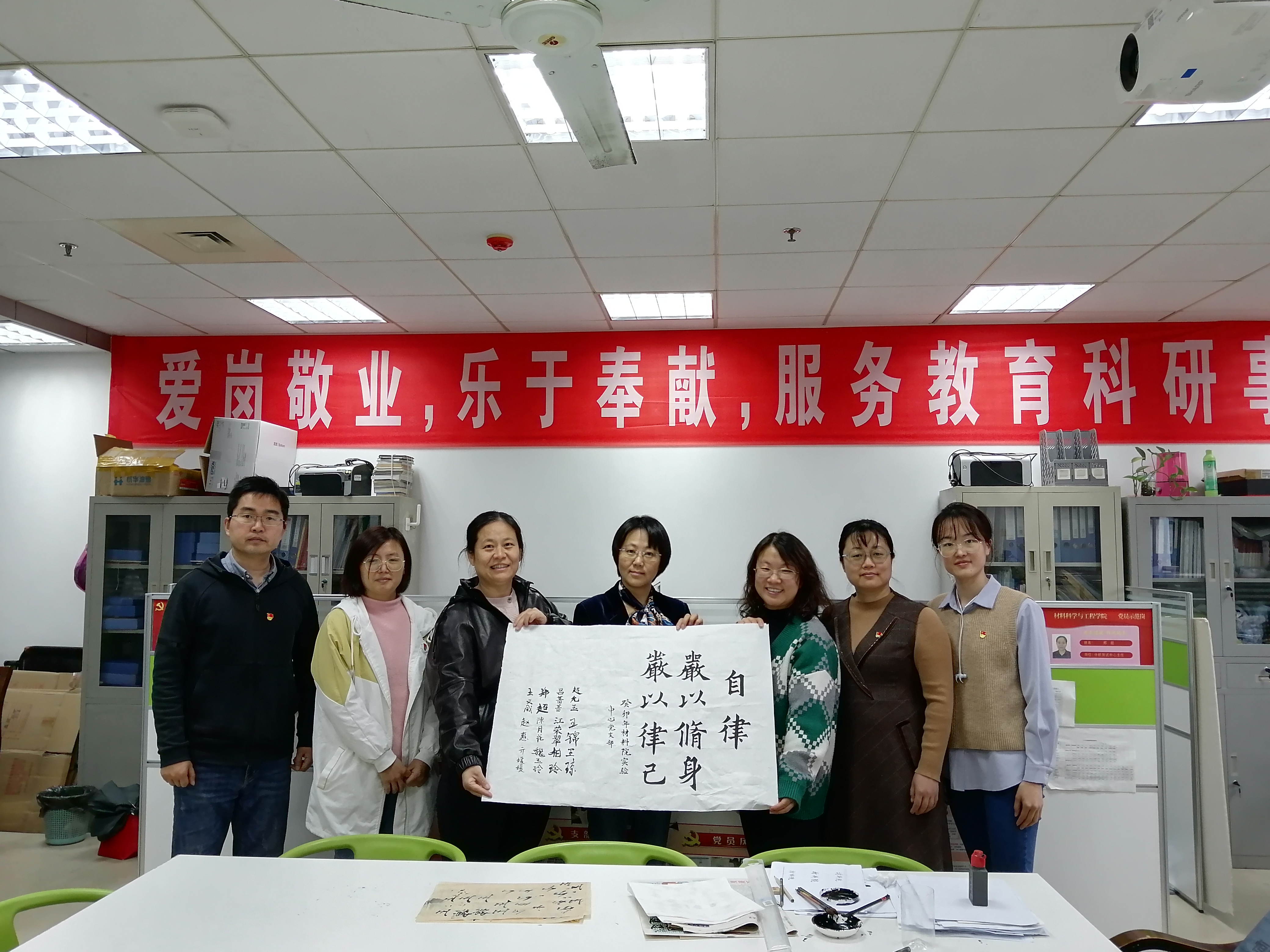为深入学习贯彻党的二十大精神,落实党中央关于加强新时代廉洁文化建设意见要求,2023年4月21日,麻豆传媒 实验中心党支部开展了清廉书法主题党日活动,支部全体党员参加。