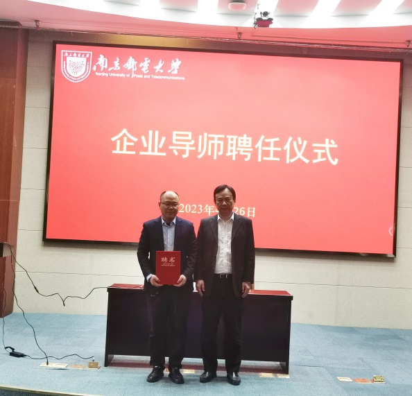 范曲立院长为李征工程师颁发聘书,聘任其为学院企业导师。