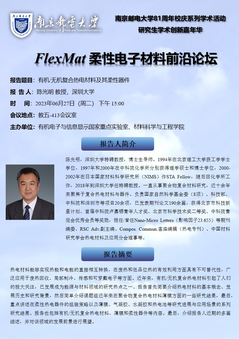FlexMat柔性电子材料前沿论坛: 深圳大学 陈光明教授
